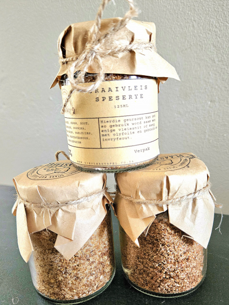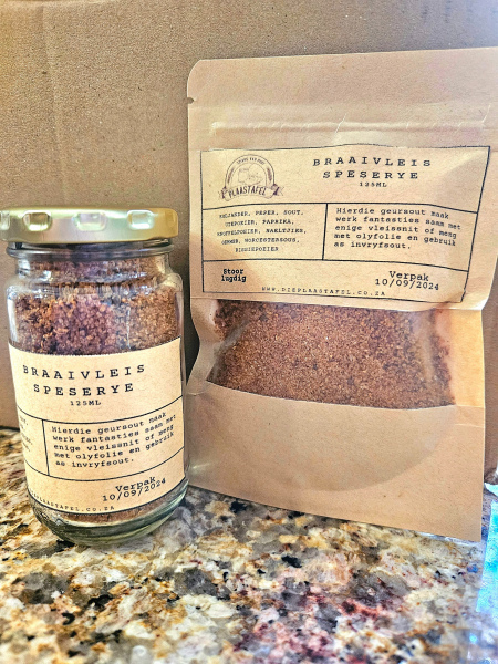 Hierdie sout vorm sy eie sous. Dit gaan saam kortrib soos kaas en kruie. Ons braaivleis speserye bevat regte worchestersous en gaan dan deur 'n lae hitte droging proses. Ons soute bevat geen preserveermiddels of kleurmiddels nie.